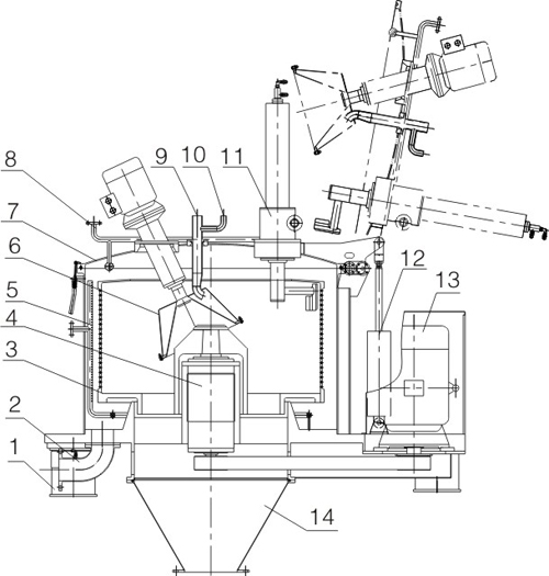 | 13.主電機(jī) | 14.出料斗 |